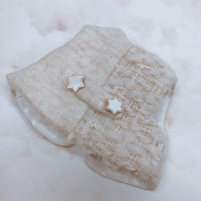別珍の紐の端にはチェコビーズと星のチャームを付けています。